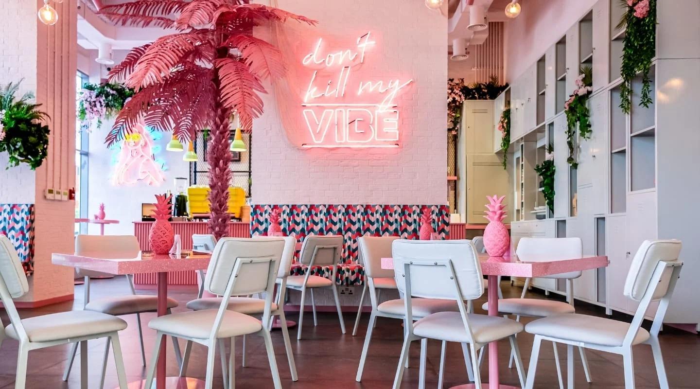 With its flora, neon lights, and other elements of beauty, this spot is sure to attract your attention. Not to mention the pink colour theme. Choose from the various splendid desserts and delicious main dishes to enjoy a great breakfast with your loved ones any day of the week. The cascading ceiling of stand-out lights, bespoke silk features, and unique teacups and saucers will all look amazing in your photos.